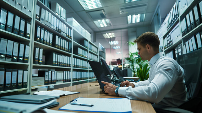 accountant auditing the financial records of business, finance audit concept, person working in office