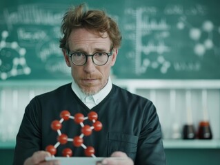 Young chemists holds molecular model in the lab