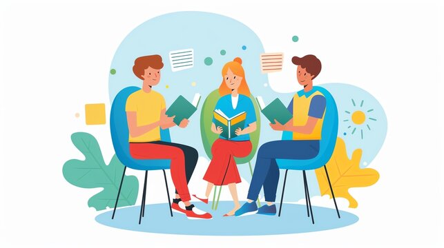 Photo of a group of LGBTQ+ students in a classroom discussion, engaged and confident
