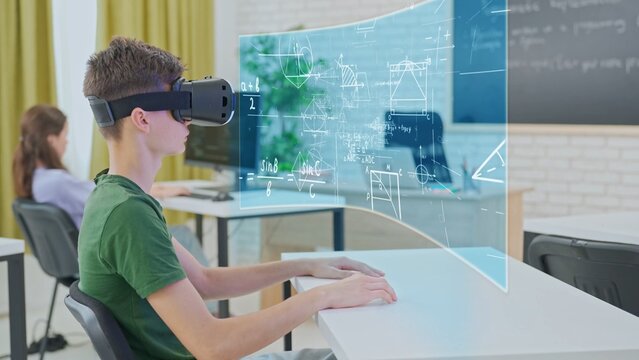 Teenage Student Deeply Engaged in Complex Mathematics and Equations on Chalkboard in Classroom Setting