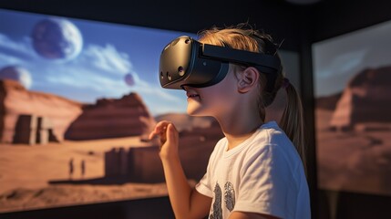 Students exploring ancient civilizations or distant planets through virtual reality.