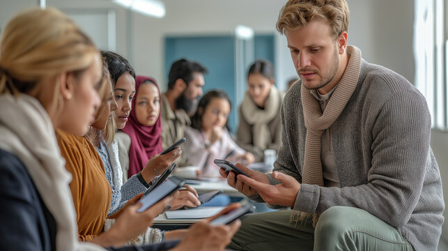 Students engaged with smartphones in a classroom setting Generative AI
