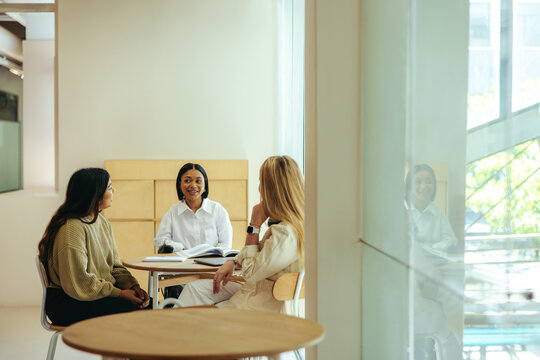 Urban students engage in teamwork during a group discussion at a modern indoor cafe setting, fostering collaboration and connection.