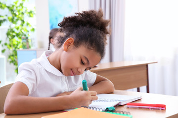 Workplace with office supplies. Office desk with papers, keyboard, notebooks. Business report, office work, deadline and studing  concept. Copy space