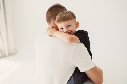 A heartwarming FatherSon moment beautifully captured in a bright, cheerful studio setting
