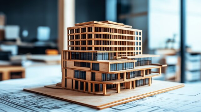 Architectural model showcase modern office building creative workspace indoor studio close-up view design concept visualization
