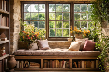 Perfect reading corner in a window seat