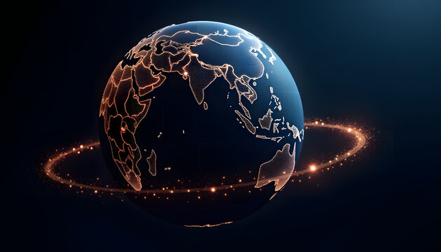 A stunning 3d rendering of planet earth with a futuristic, digital design.