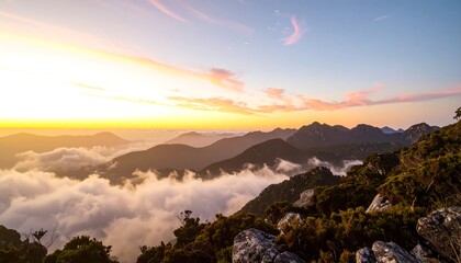 Golden Sunrise Over a Sea of Clouds and Mountains.
