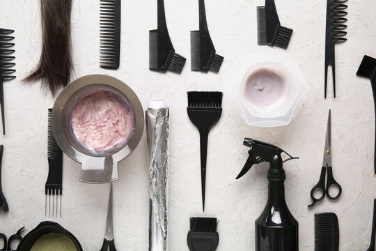 hair tools, beauty and hairdressing concept - hairdryer, hot styler and curling iron or tongs on white background