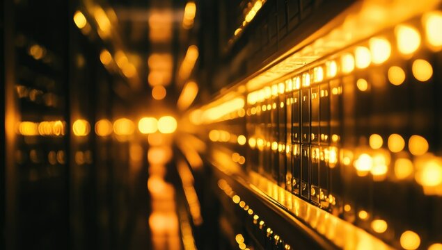 Glowing server rack in a dark room, showcasing technology and data storage