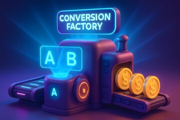 3d conversion factory concept machine illustrating a b testing and success