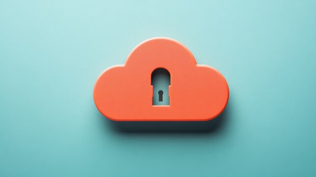 A stylized orange cloud with a keyhole symbolizes online security and data protection.