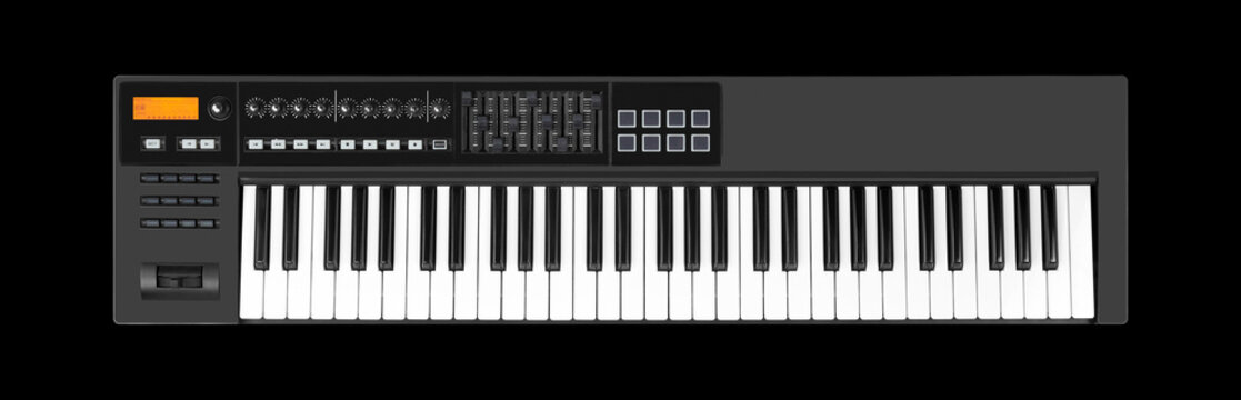 3d render of a piano keyboard with a speaker on a white background, ai generative