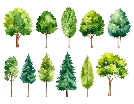 Collection of stylized trees and park benches for nature and outdoor scene design