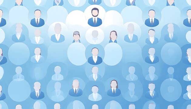 Abstract graphic of numerous stylized business people in light blue circles