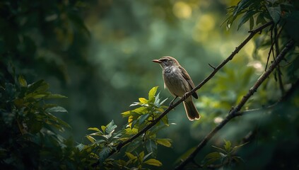 Jungle babbler perched among foliage, focusing on species identification and habitat, Indian subcontinent biodiversity