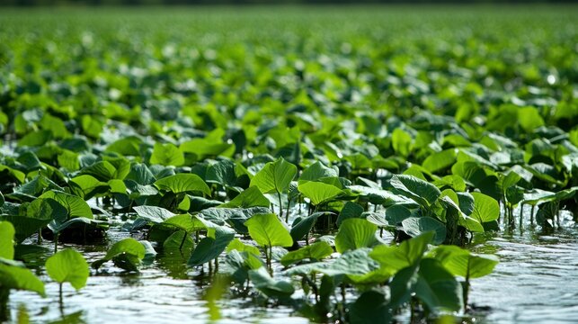 Underwater view of muddy river bed, natural sediments and submerged plant life