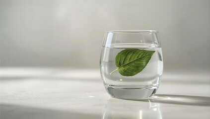Fresh Green Leaf Submerged in Clear Water Glass