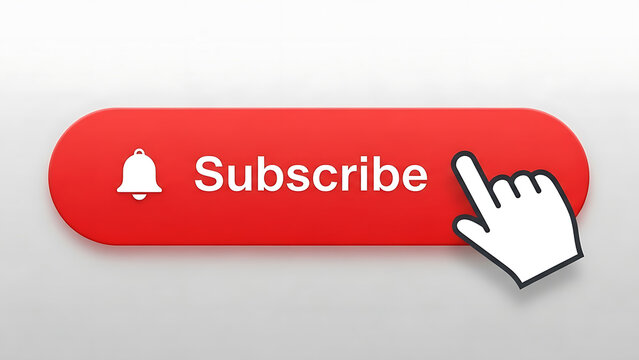 Digital hand cursor with subscribe button on white background