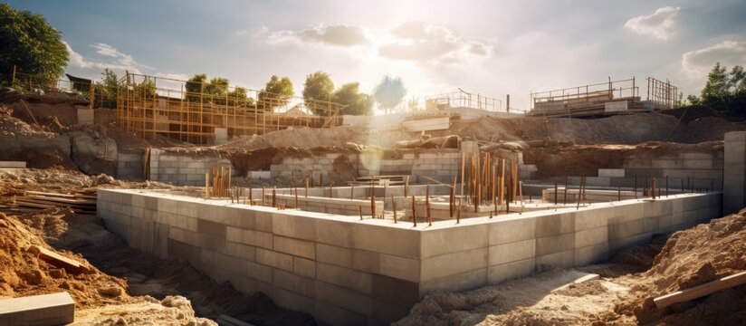Residential building foundation under construction.