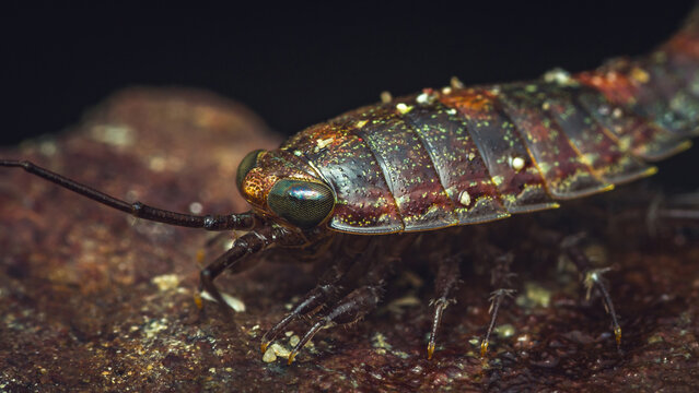 Sea slater crawling on a rock in the ocean.