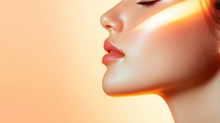 Closeup female lower face showing natural skin texture, soft lips and subtle makeup
