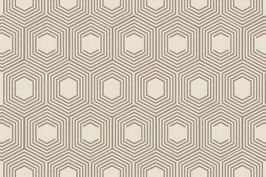 Seamless geometric hexagonal pattern with intricate lines in neutral beige and taupe tones