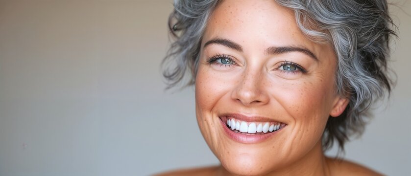 Portrait of an elegant mature woman with a soft, subtle smile and a calm demeanor
