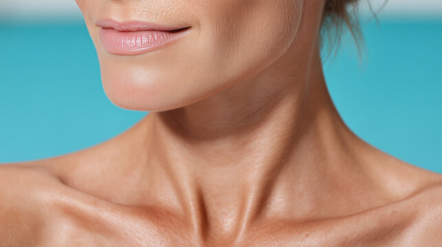 Extreme close-up of a delicate smile with soft lip curves and subtle natural texture. Minimal composition with clean studio lighting, detailed and realistic macro aesthetic