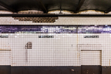 Abandoned subway scene with rusted benches and peeling posters in apocalypse aftermath