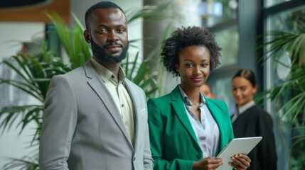 Confident diverse senior leadership team smiling in modern office - professional business executives, teamwork, corporate success and leadership portrait