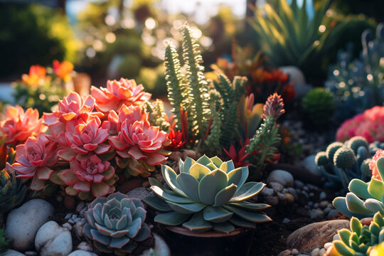 Colorful succulent flowers in various shades and textures, multicolored, succulent, flowers, vibrant, plants, garden
