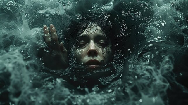 portrait of a woman in water, a drowning woman