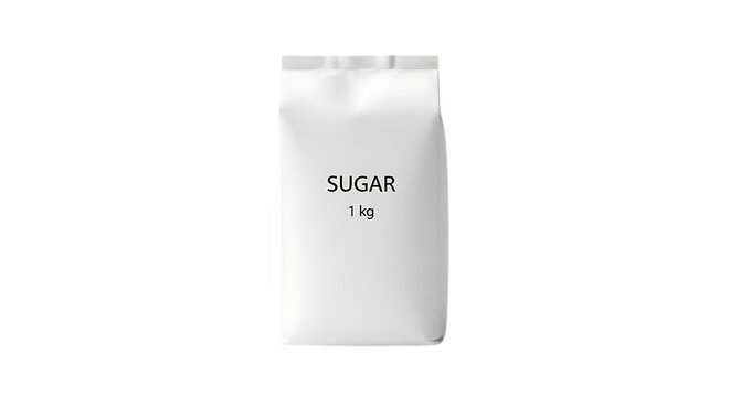 A one kilogram paper bag of white granulated sugar isolated on transparent background, a common sweetener and food ingredient for cooking and baking