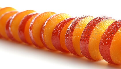 Succulent grilled peach slice in mid-air with a burst of sweet syrup creating a delightful confectionery scene