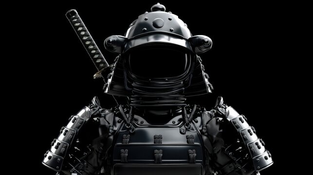 Powerful Samurai Armor with Katana Sword Dark and Shiny Black Metal Suit of Armor
