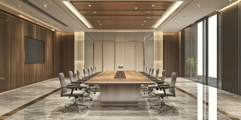 An elegant executive office space designed for leadership, with a large conference table and personalized decor elements