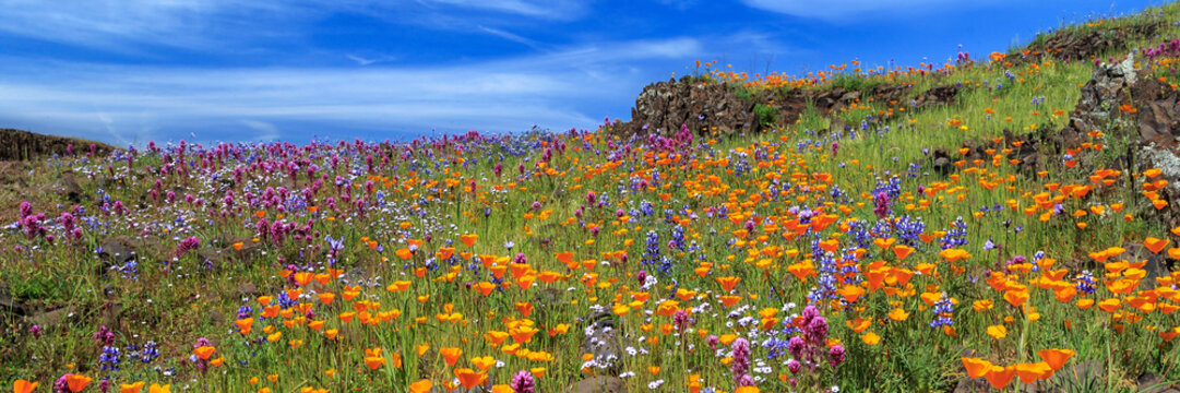 Poppies And More Panorama On North Table Mountain
