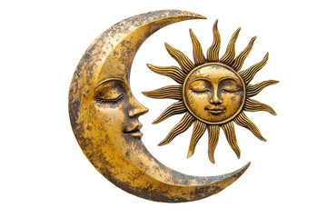 Artistic depiction of sun and moon with human faces, symbolizing balance and harmony in celestial artwork, isolated on transparent background.