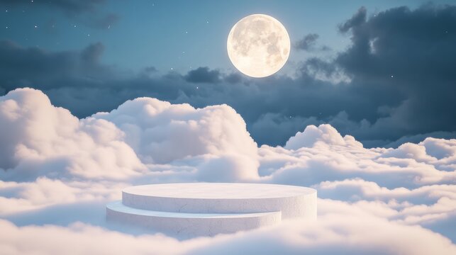 Super moon with a circular rainbow halo formed by the mist Bblue foggy night with diffused moonlight and stars