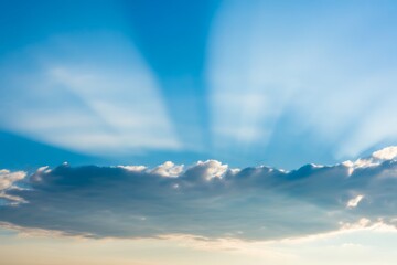 Dramatic cloudscape with sun rays breaking through clouds