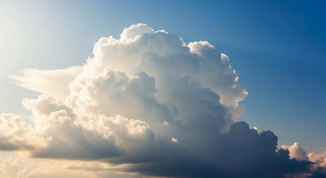 Dramatic cumulus cloudscape against clear blue sky