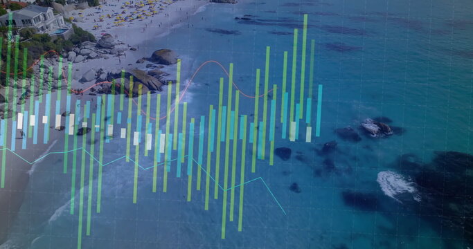 Colorful beach ice cream stand on sunny day near the ocean shoreline
