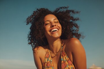 Young lady enjoying a blissful beach getaway during the summer vacation