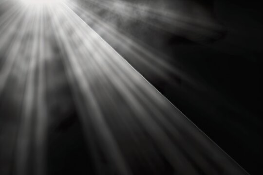 Sunbeams breaking through storm clouds framing window casting light into dark room shafts