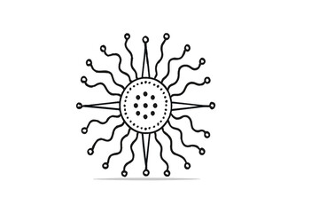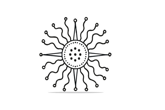 Stylized black and white sunburst emblem with radiating wavy lines and circular elements representing energy and light