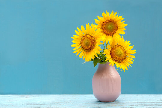 sunflower in a vase on a blue background