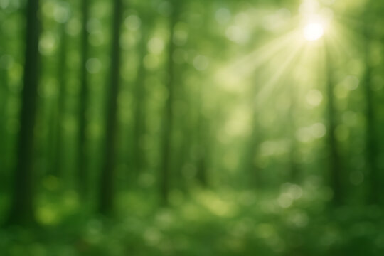 Sunlit forest clearing representing natural beauty and serenity, with rays and greenery