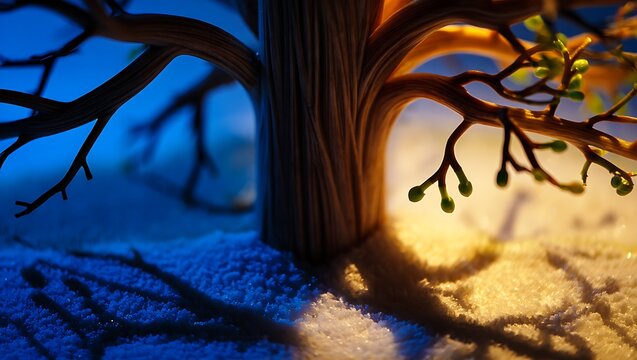 Winter sunlight through snowy branches